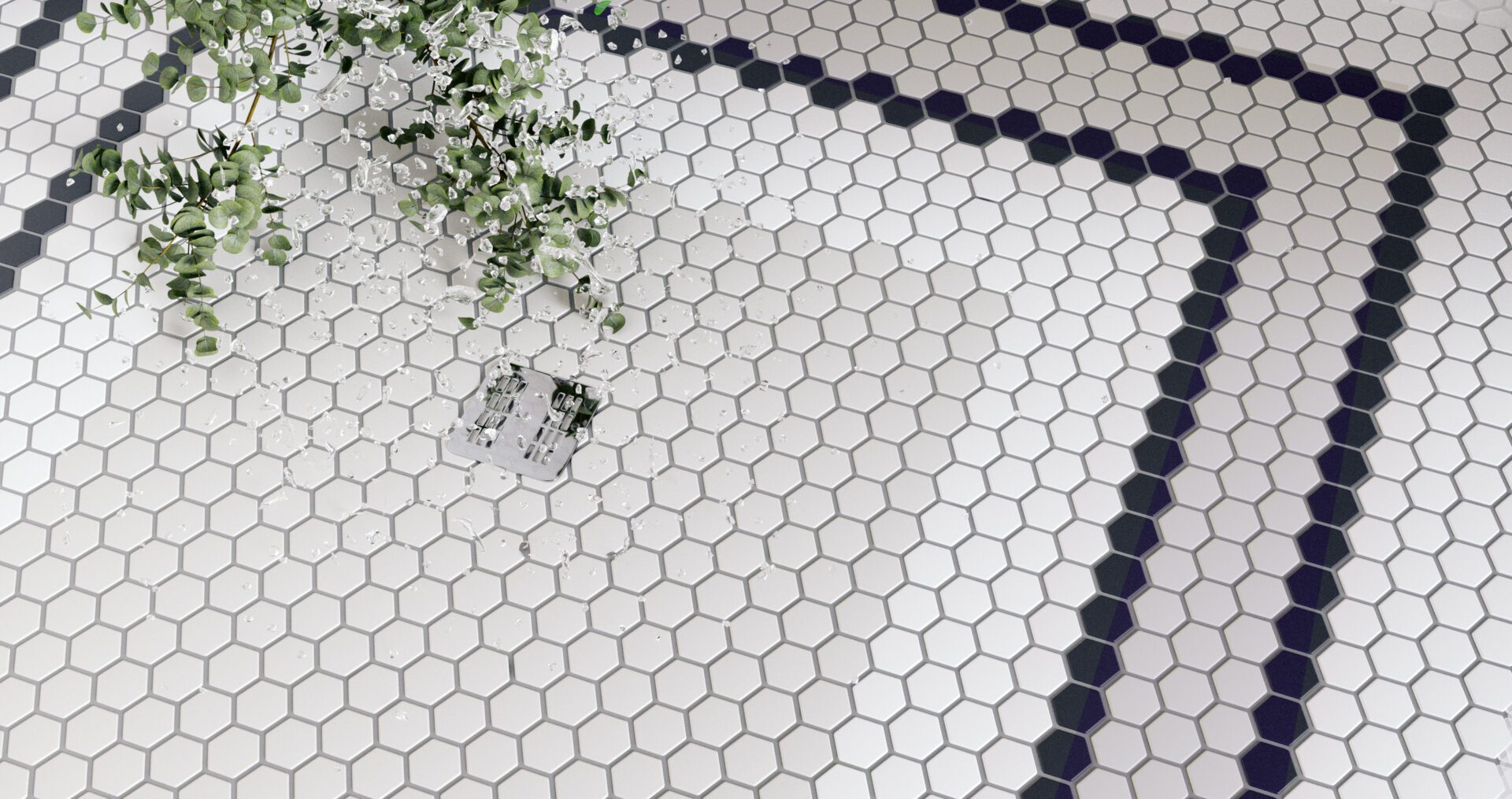 Wzorzystymi kaflami (np. mozaika lub płytki typu patchwork).